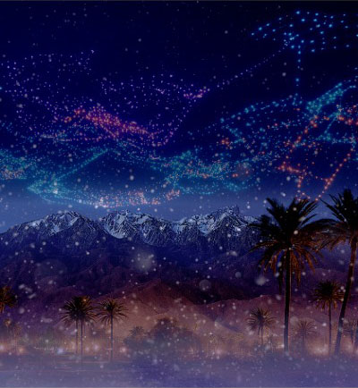 Dance the night away with a party band, “The New Originals” and DJ Ebony, then watch the sky come alive at midnight with a dazzling drone show sponsored by City of Cathedral City.