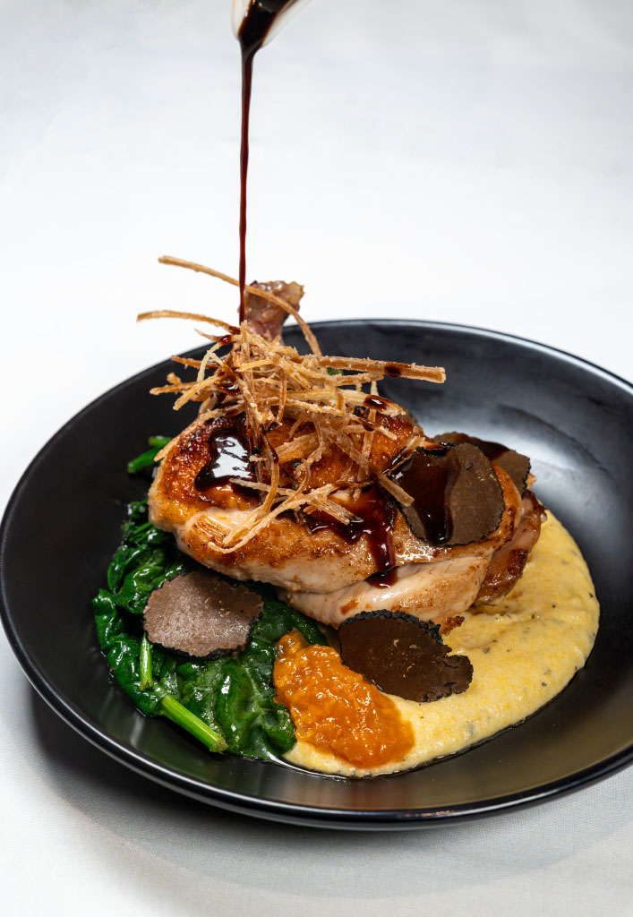 Winter Truffle Polenta, Black Kale, Chicken Jus, Shaved Winter Truffle, Crispy Leek