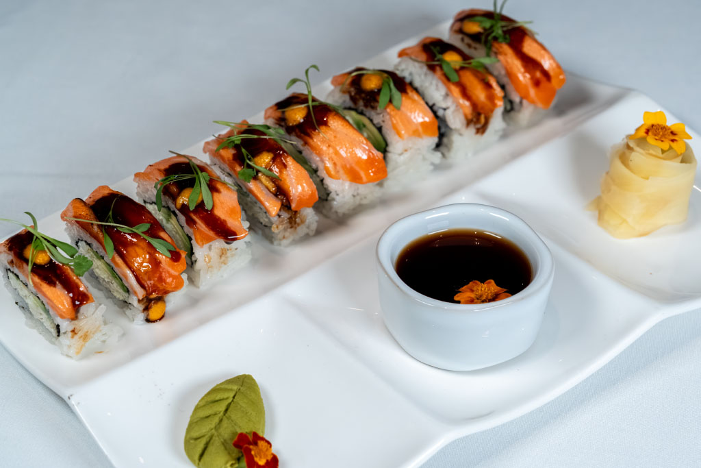 Torched King Salmon Belly, Sushi Rice, Nori, Sweet Soy, Spicy Mayo, Avocado